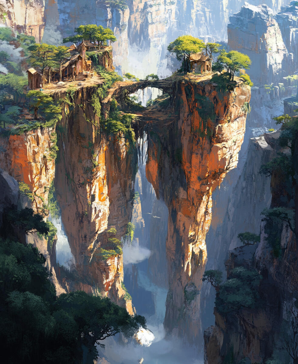 ◇ Sapphire Nest Townhouses: an exclusive residential enclave designed specifically for the demihuman avians of St. Minerva City, offering a harmonious blend of modern living and cultural respect. Located near the ruins of Sapphire Nest, a revered site in avian culture known for its ancient relics and sacred history, these townhouses cater to the middle and middle-high income brackets within the demihuman avian community.The architectural design of the townhouses is an elegant fusion of practicality and cultural significance. Inspired by avian anatomy and their flight-centric nature, the structures incorporate open, airy layouts with expansive windows that allow for plenty of natural light and views of the surrounding skies and ruins. The buildings themselves are constructed from light stone and natural wood, with accents of metal designed to resemble the intricate wing patterns of birds. The exteriors are finished in soft sky blues, whites, and muted greys, evoking the peaceful, serene essence of a bird’s flight through open skies.Each townhouse is uniquely designed to accommodate the needs of its avian residents. High, vaulted ceilings are standard, allowing for greater freedom of movement, especially for those with larger wingspans. Wide open staircases lead to second-story lofts and balconies, where residents can stretch their wings in private or enjoy views of the vast, open sky. Many of the homes are built with built-in platforms or perches, perfect for the avian residents to land or rest comfortably. Balconies and terraces are often equipped with built-in bird baths or small outdoor aviaries to reflect the avian lifestyle.The interior of the townhouses is spacious and well-appointed, with open-concept living areas designed to flow into each other. The living spaces feature large, comfortable seating arrangements that allow for both lounging and communal gatherings. The décor is minimalistic but elegant, with natural materials such as wood, feather-inspired accents, and soft textiles in calming hues of blue, green, and gold. The furnishings reflect both avian comfort and the practicality of human living, with adjustable seating arrangements, wing-friendly furniture, and ample space for air circulation.The kitchens are modern and well-equipped, with counters and storage spaces designed to be accessible both to those with wings and those without. Customizable cabinets and shelving are placed to accommodate different heights and wing spans, and the dining areas often have windows that open to outdoor spaces, providing a sense of connection to nature.The community around Sapphire Nest Townhouses is tight-knit, with neighbors often sharing a sense of pride in their shared heritage. The nearby Sapphire Nest ruins are a spiritual and cultural hub for the residents, where ancient rituals and festivals are celebrated, and young avian demihumans learn about their rich history. The townhouses are located in a prime position to allow easy access to the ruins, where the old architecture and sacred grounds evoke a deep connection to the avian ancestors and their once-great civilization.The streets surrounding the townhouses are gently curved, with small parks and gardens tucked away between the rows of homes. A variety of outdoor spaces encourage socialization, with aviaries for communal gatherings, places for flight practice, and gardens filled with plants that attract birds and other wildlife. It’s a community that prioritizes harmony between its residents and their environment, blending modern comforts with the ancestral traditions of flight and freedom.Sapphire Nest Townhouses are a peaceful, high-quality residential choice for avian demihumans, offering both a comfortable modern life and a deep connection to their cultural roots, all within the elegant and tranquil surroundings of their sacred grounds.