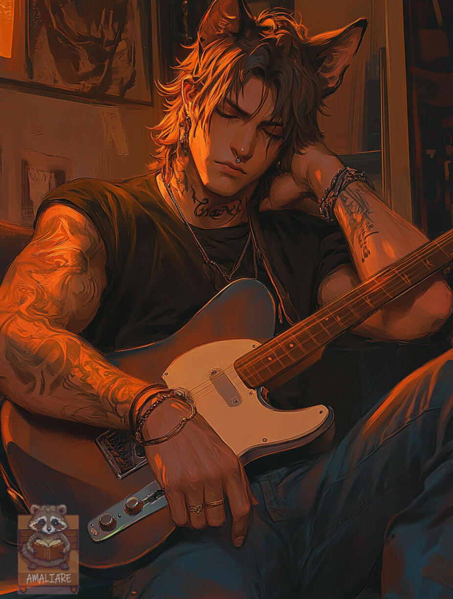"I bring the charm and sweetness. They need me to balance the crazy. Besides, who else could handle the chaos and still make it sound good?" Chris DuboisVeronika Arzan (Chimeric Demihuman): "Veronika is incredible—her presence, her voice, everything about her is larger than life. She’s got this wild creative energy that makes the band feel alive. But, honestly? She’s a little intimidating. She’s the kind of person who burns bright, and I just try to keep up."Joffrey Rogers (Vampire): "Joffrey is... intense. He’s always so serious about everything, like he’s composing the soundtrack to some grand opera. I respect him a lot—his talent is undeniable—but sometimes I wish he’d loosen up a little. Music should be fun, not just precise."Ned 'Silk' Puni (Demihuman Lion): "Ned acts tough, but I think he cares more than he lets on. He’s got this dry, sarcastic way of speaking that makes it seem like nothing fazes him, but I can tell he watches out for us. He gives me a hard time, but I think it’s his way of making sure I don’t get stepped on."Rob Moira (Werewolf): "Rob is hilarious. Loud, ridiculous, and a little too reckless, but I can’t imagine this band without him. He brings the fun when things get too serious, and even though he’s kind of a jerk sometimes, I know he’d have my back in a heartbeat. He’s like the wild older brother I never asked for."