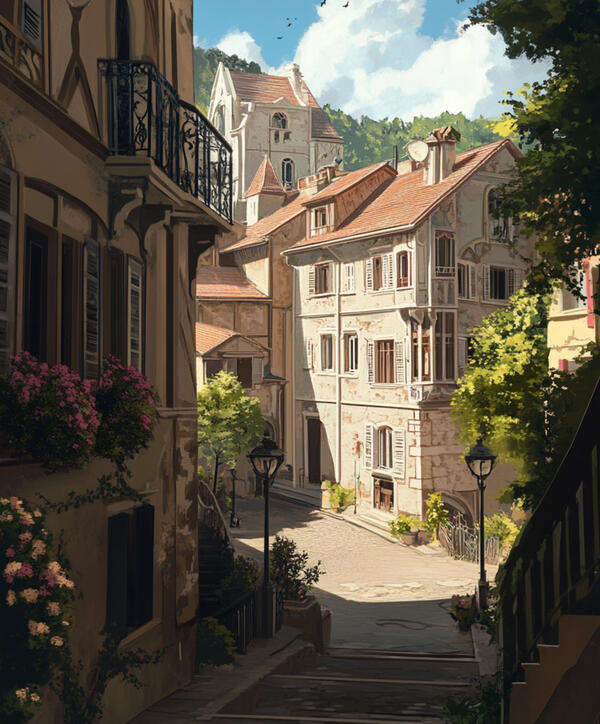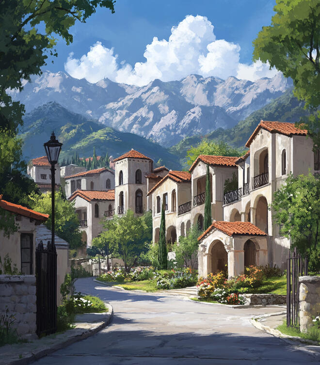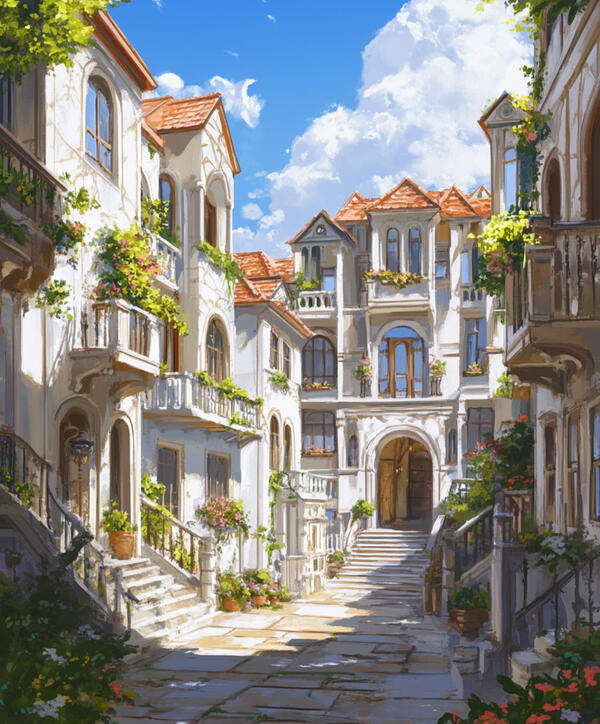 ◇ Golden nest: An exclusive, opulent village nestled in the heart of St. Minerva City, a haven for the wealthiest residents who seek both seclusion and proximity to the city's cultural pulse. Its name alone evokes a sense of gilded comfort, and the reality is no less extravagant.The village is designed in the grand European architectural style, resembling the charming, aristocratic neighborhoods of Paris, Rome, and Vienna, with narrow cobblestone streets winding through the area. The buildings are a stunning mix of classical and Renaissance influences, with tall, elegant townhouses and mansions featuring ornate façades, wrought iron balconies, and arched windows framed with ivy. The exteriors are finished in soft pastel tones—creamy whites, muted blues, and pale yellows—while marble columns and gold-leaf accents shine in the sunlight, creating a timeless, luxurious aura.Each home in Golden Nest is meticulously crafted, with sprawling gardens surrounding them. The estates feature manicured lawns, fountains, and sculptures dotting the grounds, creating an idyllic and peaceful atmosphere. Tall wrought-iron gates open into these private residences, adding an air of exclusivity and privacy. The streets are lined with mature trees, providing dappled sunlight and a sense of tranquility. On every corner, there are boutique cafes and artisan shops, offering the finest in luxury goods—handcrafted jewelry, imported wines, and high-end fashion—catering to the sophisticated tastes of the residents.The village square is a true centerpiece, designed to resemble a European piazza, with a grand fountain at its center surrounded by statues of historical figures. It's here that high society gathers for outdoor soirées, where the rich and influential enjoy fine dining and entertainment in the open air, sipping champagne beneath twinkling lights strung overhead. Classical music often fills the air, played by string quartets or solo pianists performing for the elite crowd.Golden Nest's streets are kept immaculately clean, with private security patrolling discreetly to ensure the safety and privacy of the residents. The shops and galleries here feature works of art from renowned artists, and the small cafes and bistros serve the finest coffee and pastries, prepared with meticulous care. The residents themselves are often seen in the latest haute couture, their fashion a reflection of their wealth and status.In addition to the luxury residences, there are exclusive clubs and private events held throughout the year, only accessible to those who live within the village or have been invited by the select few who have the right connections. It's a place of old-world charm and modern wealth, where the finest traditions of Europe meet the cutting-edge trends of contemporary high society.